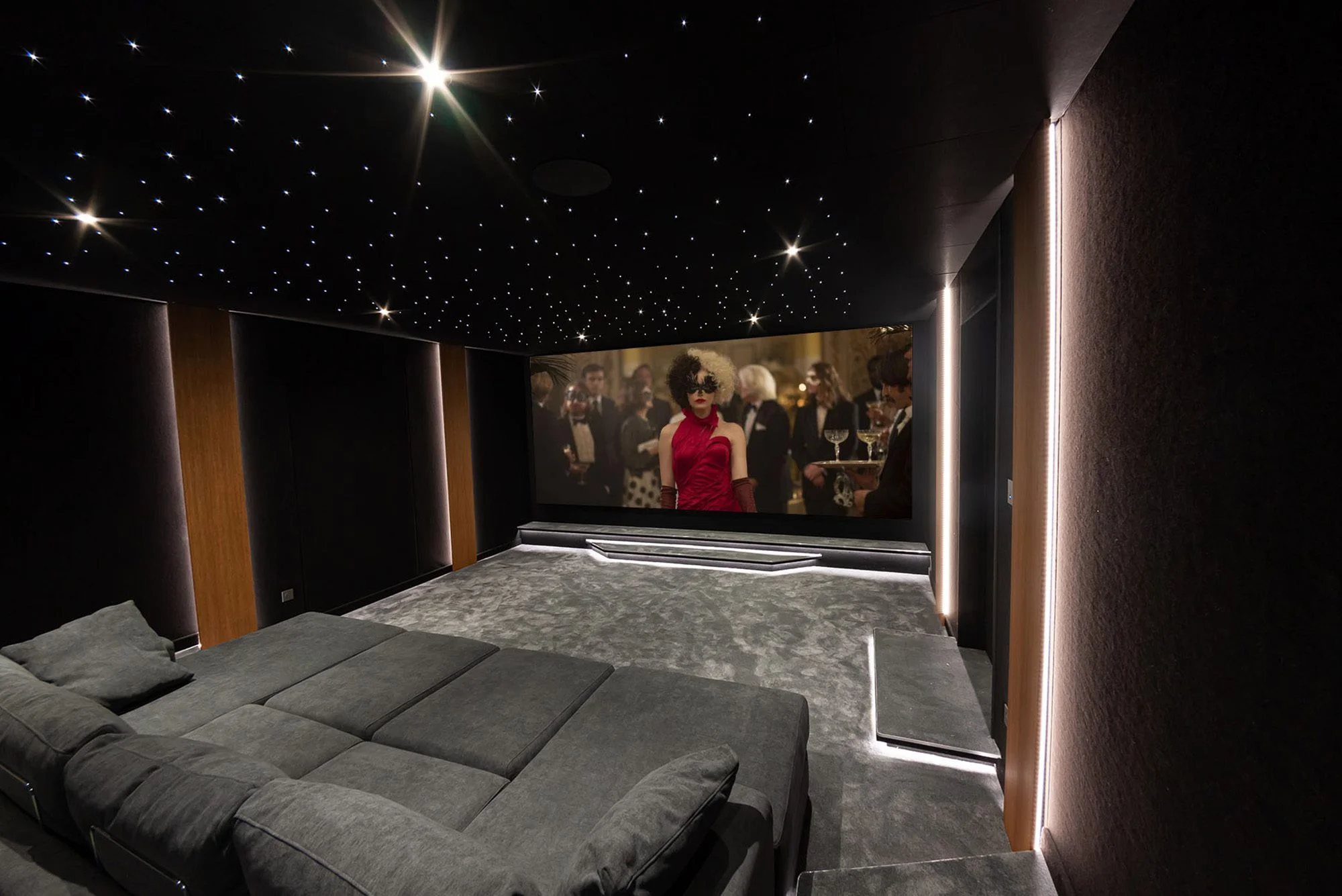 Quant à la gestion de la lumière, elle influence directement le confort visuel. L’idéal consiste à éliminer toute source lumineuse parasite pendant les séances : volets occultants, éclairage indirect pilotable via domotique, leds d’ambiance aux tons chauds. Certains choisissent même d’installer des étoiles LED au plafond pour reproduire l’atmosphère des grandes salles.